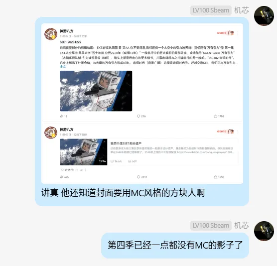 同期的腾讯的剧版三体,都比我三的第四季要强非常非常多(甚至某种程度我三第四季还不如异画做的那个)。